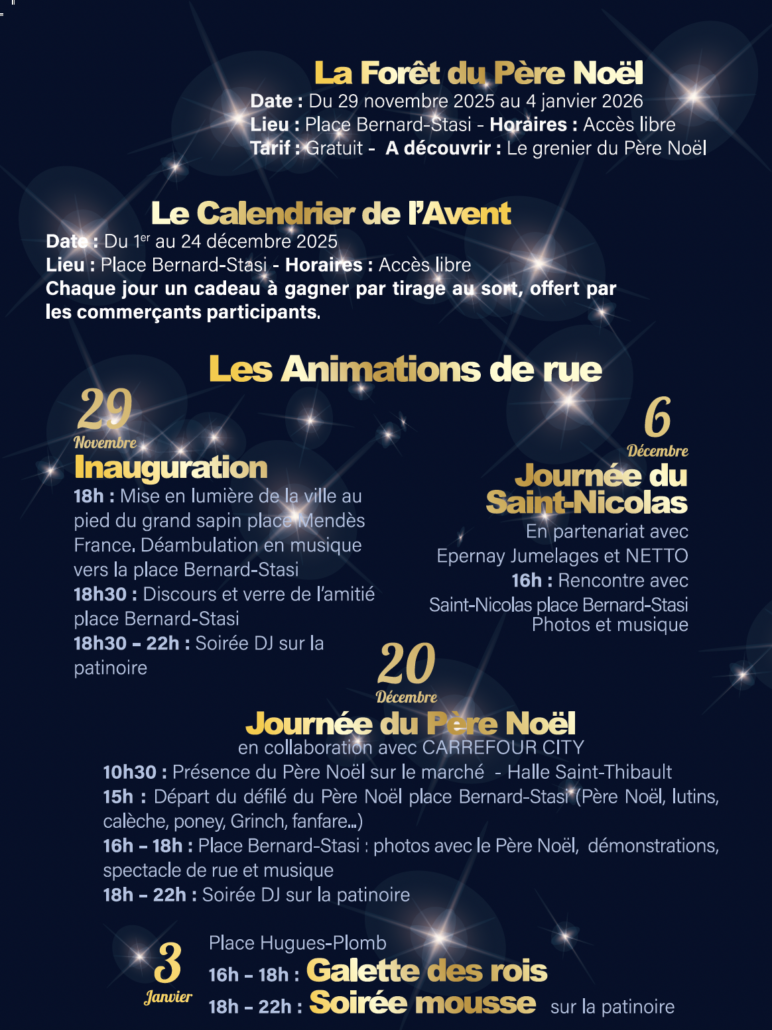 Du 29 novembre 2025 au 4 janvier 2026, la magie s’installe en ville pour un mois enchanté fait de lumières, de rencontres et de moments partagés ❄️